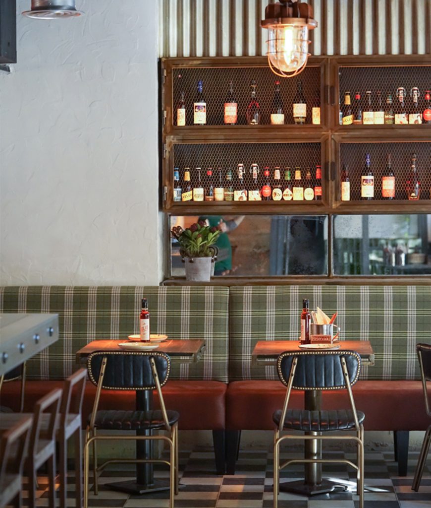 El local tiene una forma cuadrada, por lo que se aprovechó esa forma para realizar una gran barra como centro del proyecto.