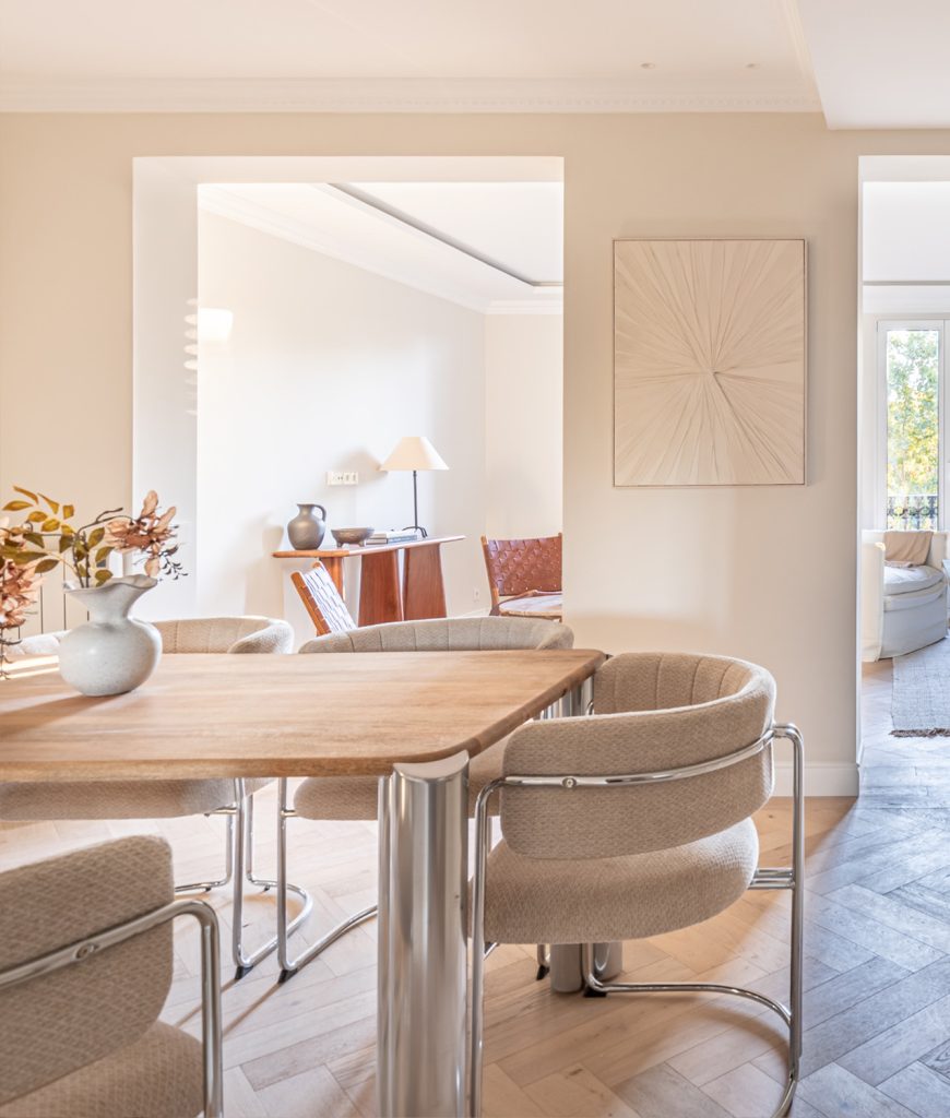 El cliente quería cuidar al máximo el detalle y seguir con el estilo clásico de la zona en la que se encuentra la vivienda. La vivienda cuenta con molduras y baquetones en todas sus estancias para generar esa continuidad.